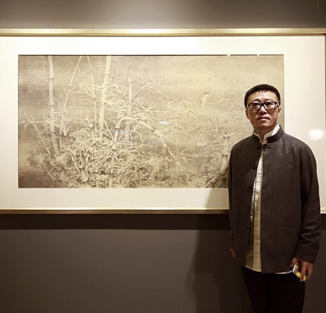 任重與其2015年代表新作〈雪竹獨棲〉,水墨設色絹本,83×164公分。