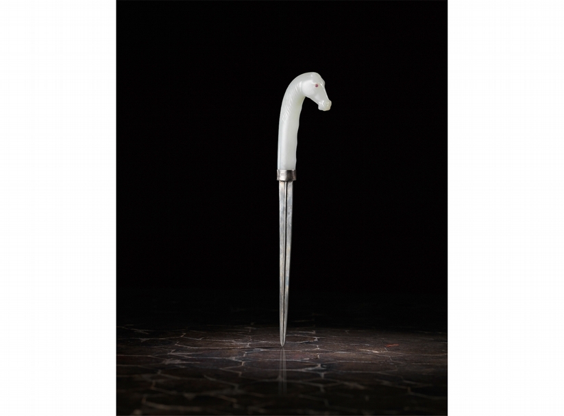 印度17╱18世紀早期〈白玉馬首匕首〉,手柄長10.8公分;總長27.3公分。圖&圖說╱香港瑞斯帝中國藝術(Rasti Chinese Art)提供。