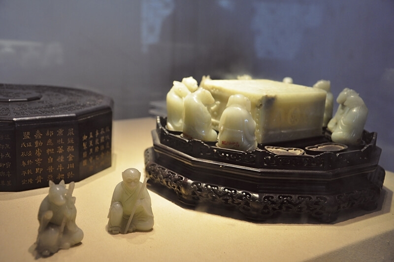 而雕刻工藝故宮藏有1萬1千件,包括象牙,壽山石等;還有1萬3千件的其它工藝,其中最難保管的就是一些盆景,有1千4百盆的盆景。像是1米多高的寶石、玉片點綴而成的盆景,在清理、移動、展覽時都得特別小心,生怕出事。文具有6萬8千件,就是人們熟知的文房四寶,筆墨紙硯;生活用具3萬9千件,就是帝后內廷使用過的東西,例如象牙棋,例如當年清宮飲用的普洱茶中藥配方,極具研究價值。還有家具,收藏有6千2百件的明清家具。