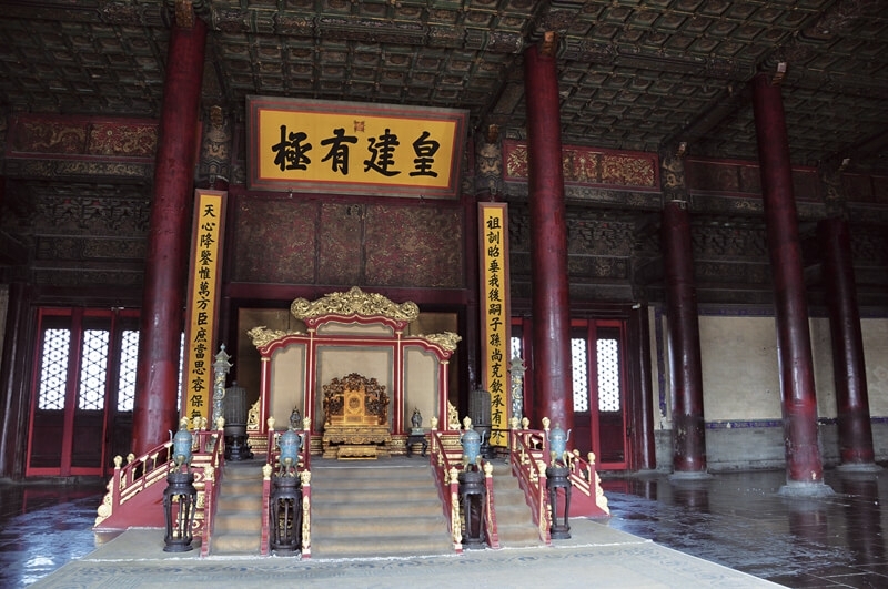 紫禁城外朝三大殿之一的保合殿殿內一景。