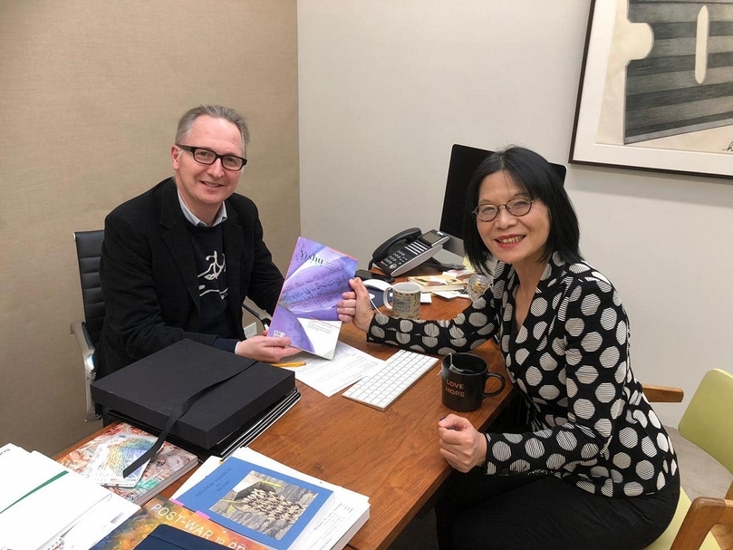 Lévy Gorvy畫廊合夥人Brett Gorvy(左)與典藏藝術家庭社長簡秀枝(右)。(簡秀枝提供)