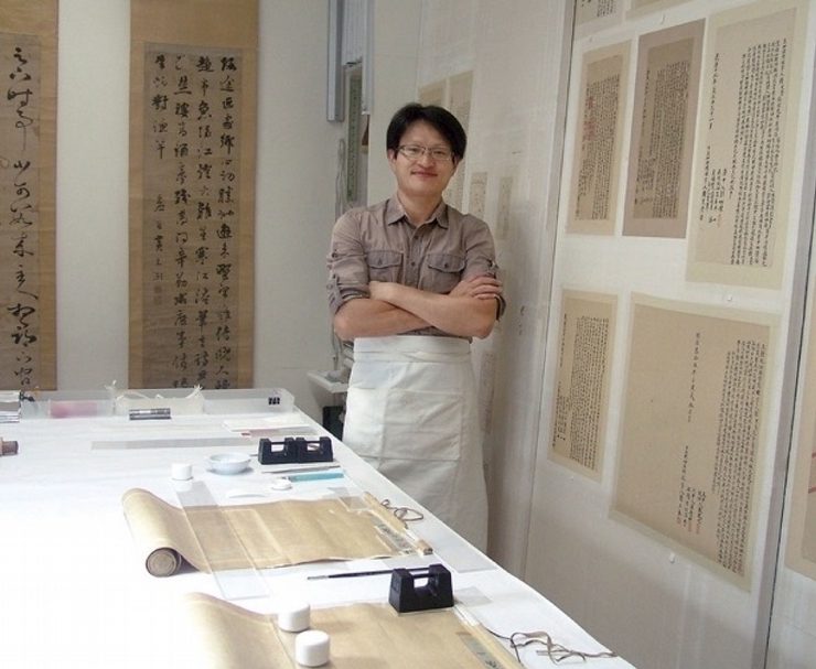范定甫大學時修習水墨創作,並由學長洪順興帶領進入書畫裱褙的殿堂,後來也跟隨著他一路進入南藝大,主修東方書畫修復;從創作者的角色轉變成為修復者,讓范定甫相對地更易掌握技術與對於創作者心念的解讀。他曾於上海博物館跟隨著諸品芳老師實習,退伍後則進入故宮博物院的書畫處修復室任職。對於一路順遂、最終令人稱羨的工作職場,范定甫卻並未停下勵精求治的腳步,他仍不斷尋求到國外機構研究或是工作的可能,2007年,果真在大英博物館的公開徵選修復師中,雀屏中選,獲得了為期半年的工作機會,也開台灣修復師之先,成為首位進入大英博物館的台灣修復師。他主要被交付中、日、韓的宣紙、絲絹等書畫的裝裱與加固修復等工作,與實習的經驗不同,所看到的事物視野也大為差異。館內常態性舉辦許多演講,從其他國家來參觀的修復師與學者川流不息,很快地便能從中獲得歐洲區域關於修復的最新動態,相對於待在台灣時總以網路連結外界、了解世界,大英博物館所提供的地球村顯得真實而互動密切許多。「學校教育只是讓我們更科學邏輯一些,而技術和觀念的傳承,本質就是人對文化的思考。」范定甫認為學習是在自己身上,到了大英博物館的一行,對於文化脈絡的學習,以及組織管理運作、人際對待等內在扎實的建構,他看到了他原先預計要學習,以及遠超乎預期想像之收穫。