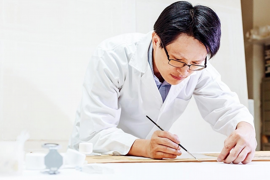 歲月時光,為藝術品增添了歷史積累的豐厚魅力,同時也是作品最大的敵人,無論是博物館中的經典之作,或是教堂廟宇中的彩繪壁畫,都無一能夠倖免。范定甫指出,「Less is More」,最好的修復應該是找尋其原有面貌並盡力使其重現,只是,越簡少的工作卻往往也是越為艱鉅的挑戰。范定甫經手的作品有私人收藏、有價的上億精品,也有博物館藏品的無價之寶,能夠近距離觀察藝術品,解讀作品所透露的文化珍貴訊息,則是他用精湛細微巧手,親手賦予凋零失色書畫重生的最大鼓舞動力。