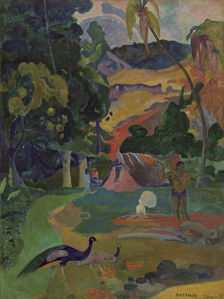 高更的作品《有孔雀的風景》,普希金博物館館藏之一。(莫斯科普希金博物館提供)