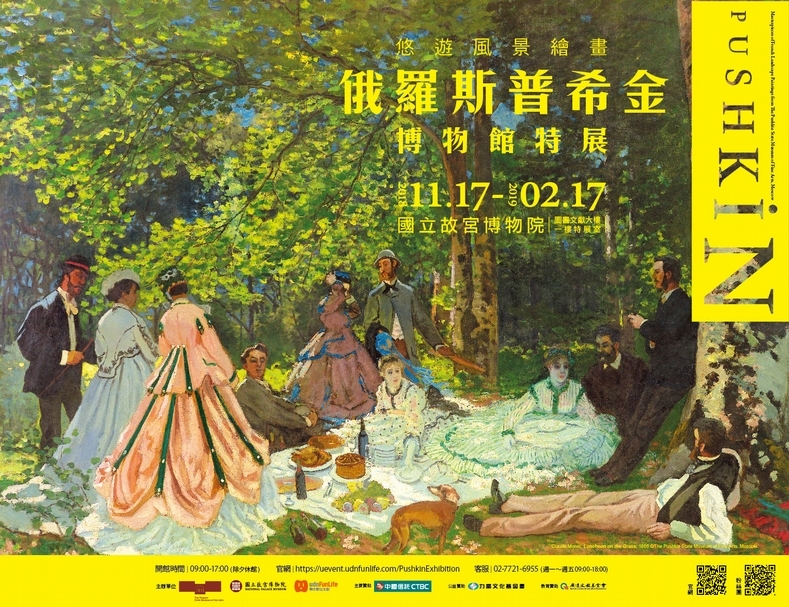 不過提到普希金博物館館藏的精彩亮點,不得不聚焦印象派至後印象派藝術與20世紀初各大藝術流派的作品,包括畢沙羅、西斯萊、竇加、馬奈、莫內、雷諾瓦、塞尚、高更、梵谷、馬蒂斯、畢卡索、德蘭、盧梭等,與延續到歐美現代藝術如立體派、野獸派如畢卡索、馬蒂斯等人。普希金館藏中風景畫主題之作不勝枚舉,除了19世紀德國浪漫主義風景畫,也館藏不少十九世紀的法國風景畫代表如西斯萊的《楓丹白露的林間空地》與畢沙羅的《歌劇院大街,清晨雪景》等精采之作。其中廣為人知的作品如印象派先鋒莫內於1866年的習作《草地上的午餐》(Le déjeuner sur l'herbe)即是此次巡迴展的重頭戲。受到馬內1863年的《草地上的午餐》啟發,莫內以獨特的視角再度詮釋傳統題材,此作也與他目前藏於巴黎奧塞美術館1863年的《草地上的午餐》構圖相近,但不同的是普希金館藏之作尺幅較小,130×181公分,是一件習作,卻比奧塞美術館館藏的《草地上的午餐》完整,在奧塞的作品僅是其中的一部分。《草地上的午餐》透著光線的樹葉散發著溫暖氣氛,畫面中最亮的部分是中間的野餐桌布,平衡畫面的整體感,足以見到莫內敏銳的觀察力,以及捕捉瞬間光線的功力。