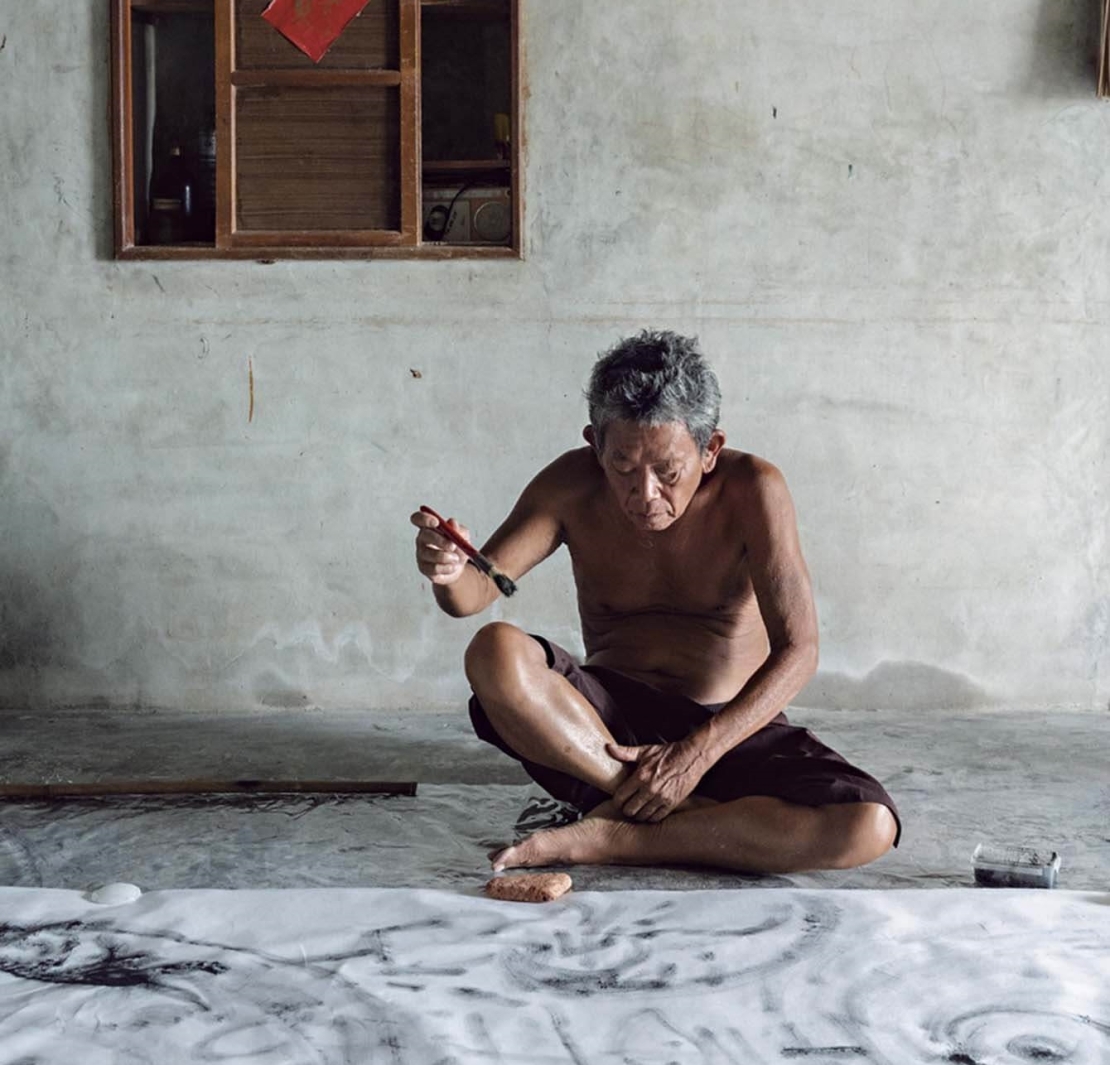 許雨仁在三芝圓山頂的半頹老屋內畫畫、寫字,外出散步兜轉、吹海風,拾廢枝回家自製炭筆,於粗衣礪食的低限生活日常中生出多樣畫意。這樣的畫面如今已為人所知。許雨仁看似隨性灑脫、不拘小節的步調節奏中不失精準,不拘泥於筆墨,不受限於物質工具。他落筆前有著嚴謹的思考,卻表現出流動的創造力,不太在乎觀者的想法,更無市場考量,他在意的是作品是否展露觀點與方法上的原創性。