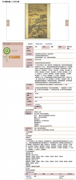 國寶檔案 清畫院畫 十二月月令圖 ※編按:翻攝自「文化部文化資產局國家文化資產管理資料庫系統 https://nchdb.boch.gov.tw/web/cultureassets/Antiquity/info_upt.aspx?p0=1537」。圖╱國立故宮博物院收藏。