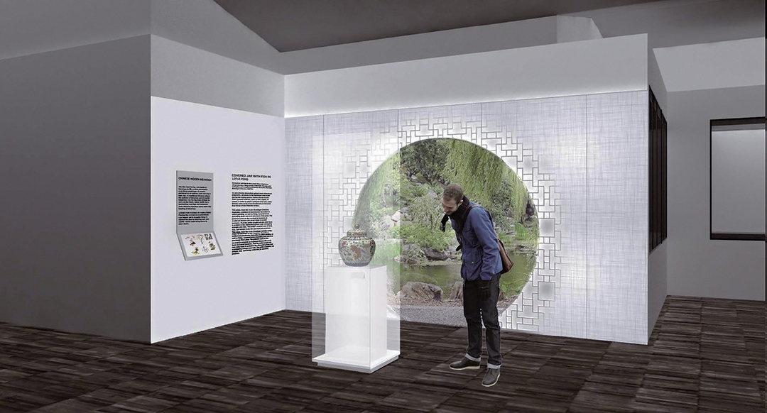明嘉靖朝〈五彩魚藻蓮池大蓋罐〉是擴建完成後將深化展出的15件館藏精品中的一件。此為展廳示意圖。