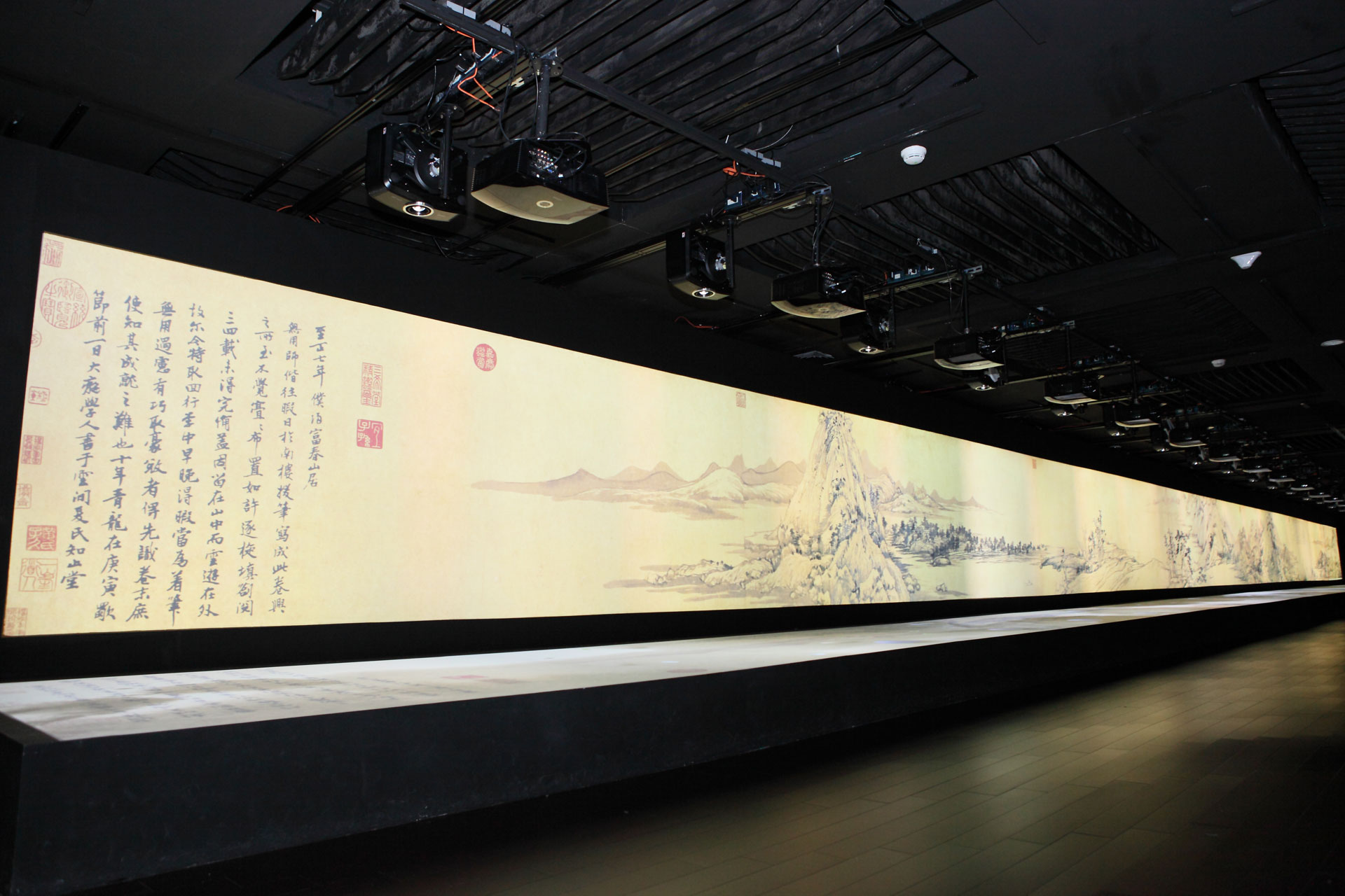 台達電與故宮的合作,首度見於2011年「山水合璧─黃公望與富春山居圖特展」。台達電以超過50台的高畫質投影機,無縫投影「山水化境─富春山居圖」動態數位作品,當時具有互動裝置的動態作品,成為展覽中「山水合璧」的盛況之外,最受歡迎的大型裝置藝術,無論平日或假日,在作品前面的人潮始終水洩不通,又因為投影精準放大《富春山居圖》的畫面,當時囿於時間無法細細端詳的原作,便可以藉由投影作品深入品味。