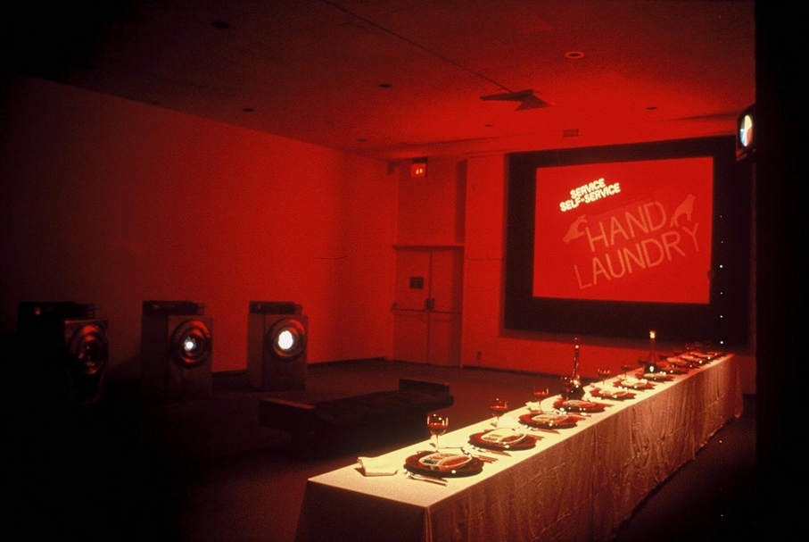 1990年《綜藝洗衣機》(Color Schemes)錄像裝置展出現場。(鄭淑麗提供)