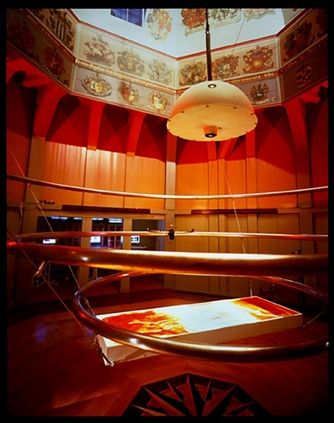 1998年《布蘭登》在阿姆斯特丹測量所(Waag Society)內「解剖劇院」(Theatrum Anatomicum)的展出現場。(鄭淑麗提供)