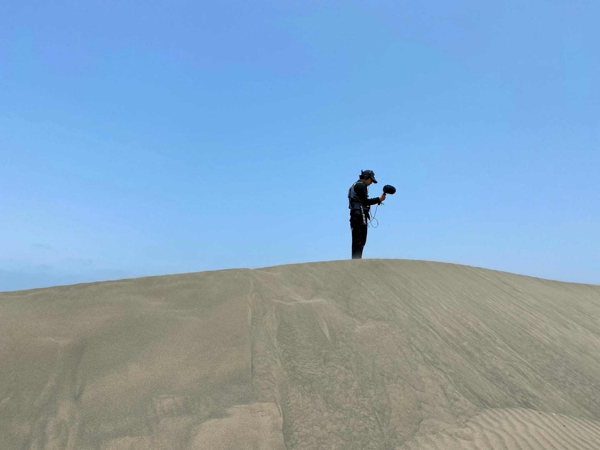 但隨著合作藝術家對於作品質地的需求越來越高,馮志銘的功能外掛也越開越多。藝術家從可能影像的配樂原本是使用網路免費的音樂素材,到希望馮志銘可以為影像製作專屬的聲音,他就開始從混音、調音,進階到影像作品的聲音設計,包括與藝術家討論希望觀賞者投入的情境,哪些聲音可以前後調整更順暢、不突兀等等,他都可以給出更細緻的建議。