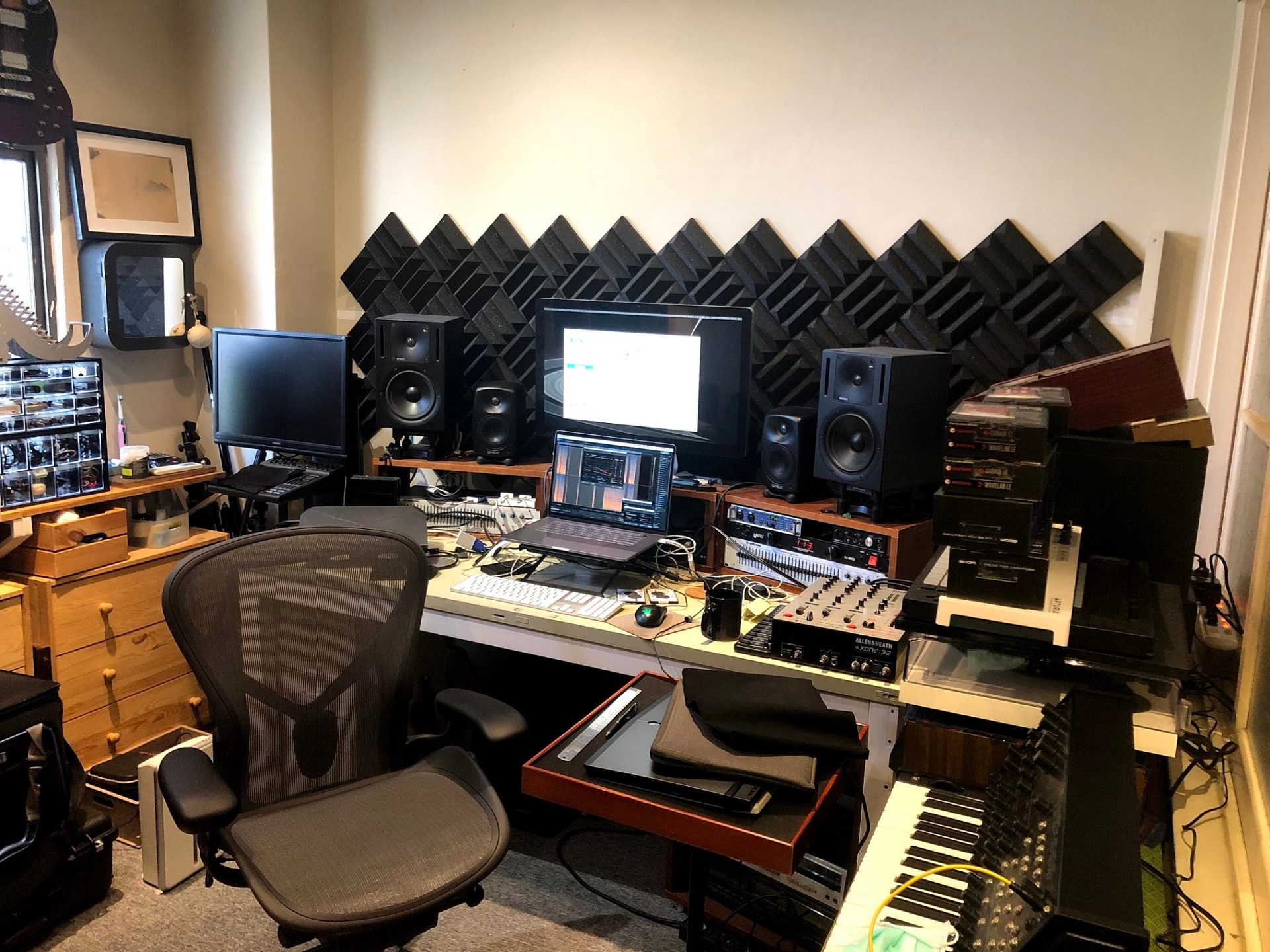 目前馮志銘也已經決定今年正式成立自己的工作室「複耳工作室」,這個一人工作室他抓著頭笑著自己的進度,「名稱想好了,但好像Logo還沒有想好。」馮志銘頂溪工作室的現址,其實房客來去過幾位藝術家,一樣的房間,因為入住藝術家的不同而遞嬗著,目前這間工作室擺滿著他聲音工作的器材與錄音設備,從藝術學院一路上關注、照護著同儕藝術家的創作需求,而這種溫柔、協助者的人格特質,卻也無形的替他累積出難以被取代的專業識別度。