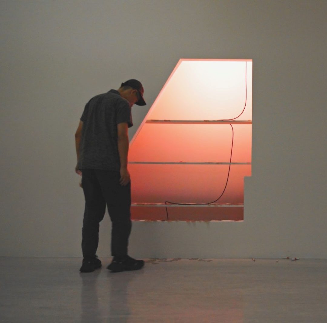 「像是一個夜店的小便斗」,既是「夜店」,也不是。藝術家要宣稱不是,是因為他害怕觀眾太快掉入一個刻板的想像,以為這裡,僅是複製一間「夜店」。「明顯我創作的,不只是那樣。」他期待觀眾進入展間,理解一種趨近於概念,但卻不會抵達的狀態。「我們好像是往那個方向走,但是我們不能真的走到那裡去。」