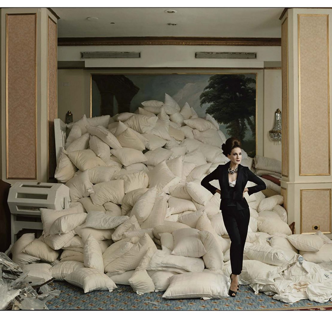 萊博維茨:我在舊金山美術學院學的是繪畫,學攝影時受到羅伯特.弗蘭克(Robert Frank)與亨利.卡蒂耶.布列松(Henri Cartier–Bresson)的影響。當我離開工作了13年的《滾石雜誌》,加入康泰納仕的原因之一是,他們對待攝影師像藝術家一樣,非常尊重,我可以盡情發揮、創造,不介入和干預我的工作,儘管時尚攝影仍有其他制約。我在時尚裡頭看到很多可能性,但也盡可能淡化時尚的重要性,我關切的是捕捉和創造拍攝對象的人格特質。我因為不是時尚界出身,反而能為時尚攝影帶來許多東西,例如新聞攝影仍存在於我的肖像中,我一直以「故事」為線索來進行創作。