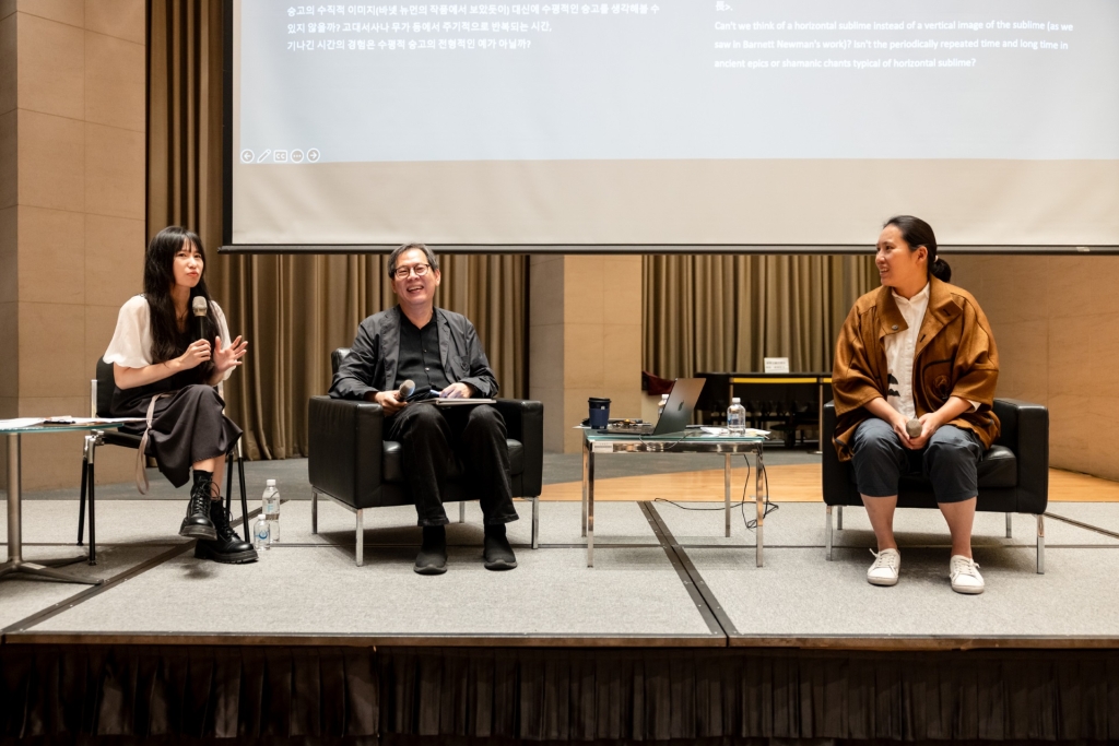 朴贊景坦言,講座內容源於他對「什麼是傳統?」此一根本問題的自我詰問,這也是貫穿其藝術創作過程不斷反思的核心。他首先指出「崇高」與「美」之間的本質差異。美,是一種愉悅;崇高,則是一種壓倒性的經驗,常伴隨恐懼、敬畏,甚至身體性的疏離。從浪漫主義畫家卡斯巴・大衛・弗里德利希(Caspar David Friedrich)與透納(J.M.W. Turner)的風景畫,到當代影像中對自然災難與戰爭的刻畫,崇高作為一種經驗與影像策略,在現代社會中不僅未曾遠去,反而在「災難」與「末日」的敘事下,以另一種形式「復活」。