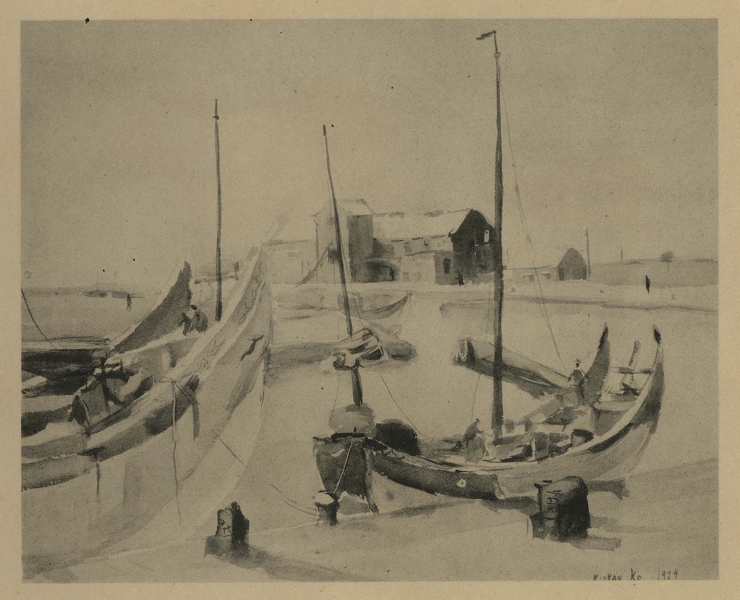 其入選第三回臺展的作品《朝之臺南運河》(1929),從畫面的暈染痕跡與水漬色塊判斷,此畫使用水彩作為創作媒材。《臺灣日日...