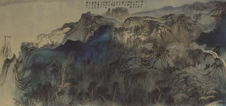 「名山大川」展現出畫家壯志不老的自我挑戰。1980年,日本華僑李海天將在橫濱開新旅館,大廳牆面欲掛畫作,故向大千求四屏連...