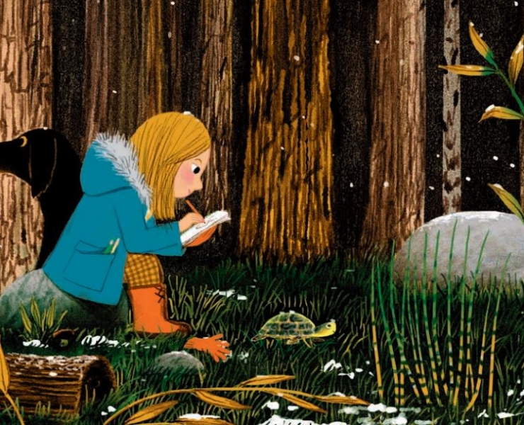 每幅跨頁都是一首小詩,而小女孩所在之處,是彷彿若有光的視覺焦點,一點一點慢慢傾注她對生活與大自然的禮讚。