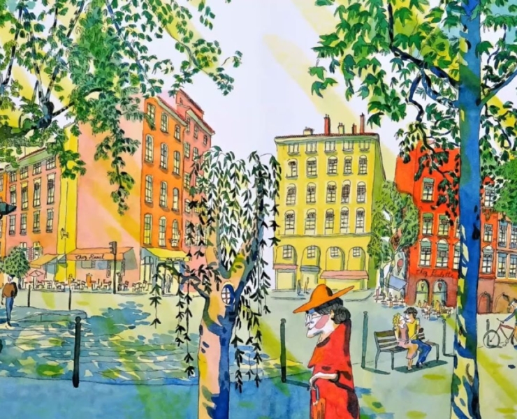 茱麗葉‧拉格朗日 Juliette Lagrange 以水彩畫優雅描繪城市風光與大自然林蔭樹景,輕柔的黑色輪廓線條,以及...
