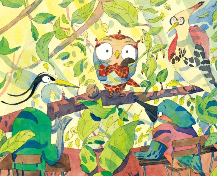最令我感到讚賞的部分是作者並沒有把上學的場景局限在教室裡,而是把一張張桌子擺放在樹枝上,也代表著在任何環境都可以學習,即...