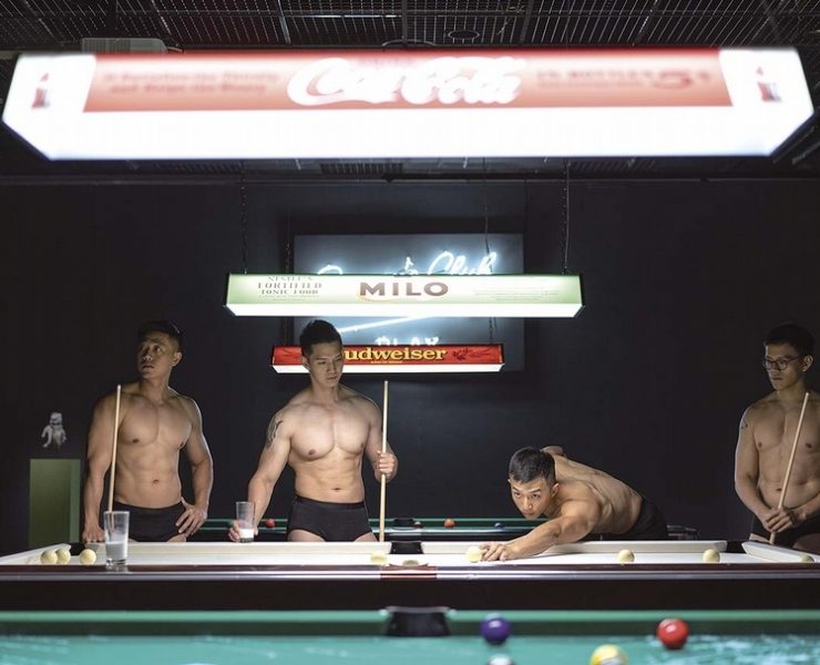 數名身材健壯的男子在畫有橫濱港地圖的撞球桌上來回交手,除了表現出不同國際勢力在此的交錯之外,這些男體符號的表現,再搭配改...