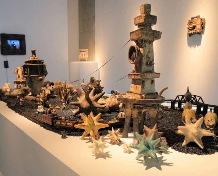 新北市立鶯歌陶瓷博物館「亞熱帶花園︰彩繪陶瓷展」中,阿咧和徐橘喵的《一個備忘紀的地方》,是一座擁有各種萌系怪獸的小島,島...