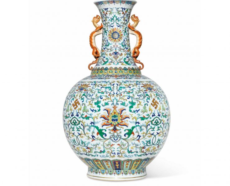 佳士得香港2022春拍,器物類七件千萬佳績,鬥彩萬福慶壽雙螭龍耳大瓶3405萬港元第一