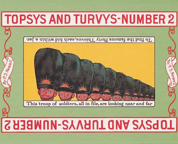 有一本我永遠無法看完、永遠會分心、卻又永遠覺得樂趣無窮的繪本──topsys and turvys《顛倒書》(簡中譯)。