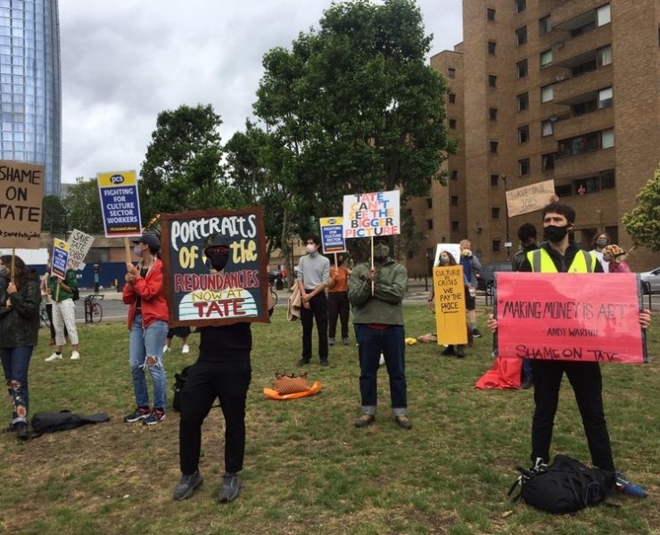 抗議示威活動由公共與商業服務工會(PCS)組織,該工會目前正在敦促泰德美術館將政府預算的900萬美元補助金中的10%轉用...