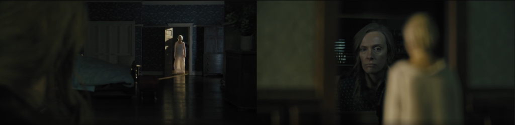 此時,我們才意識到,畫面中的模型屋正是格雷厄姆家的縮影,一場悲劇的故事由此展開。艾瑞.艾斯特意圖將觀眾的視線從模型屋的視角,不斷探入直至變換為現實的空間。此種「模型空間」與「現實空間」的轉換與對應之手法,在整部電影中反覆預言或重演了格雷厄姆家庭的宿命。換言之,導演並不是透過直接敘事(Direct speech)的視角來講述事件,而是透過「模型」這一隱喻的敘事媒介,營造出交纏的、錯位的、異質的,猶如莫比烏斯環(Möbius strip)的敘事空間。