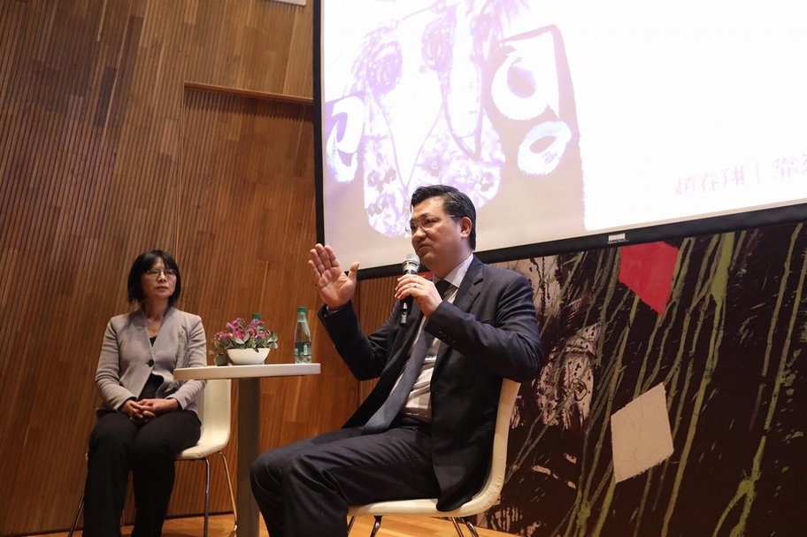 「遠方的行星:趙春翔藝術展」開幕座談,佳士得亞洲區副主席暨亞洲20世紀及當代藝術主管張丁元,分享對趙春翔繪畫美學、藝術成就、往事背景的解讀與評析。(攝影/陳俊松)