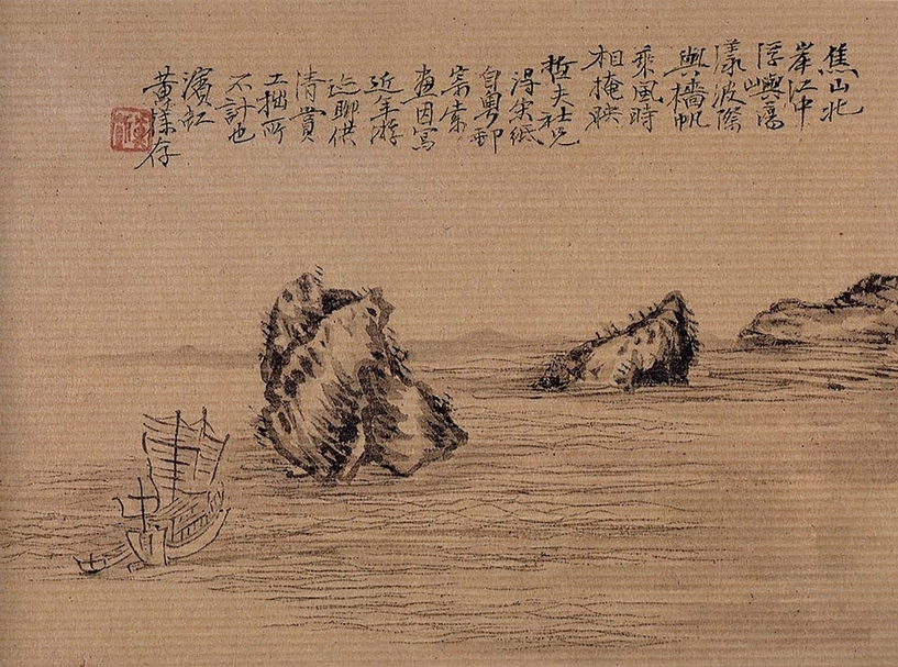 石濤〈金陵山水圖冊〉局部可見垂直簾紋。圖/何炎泉。