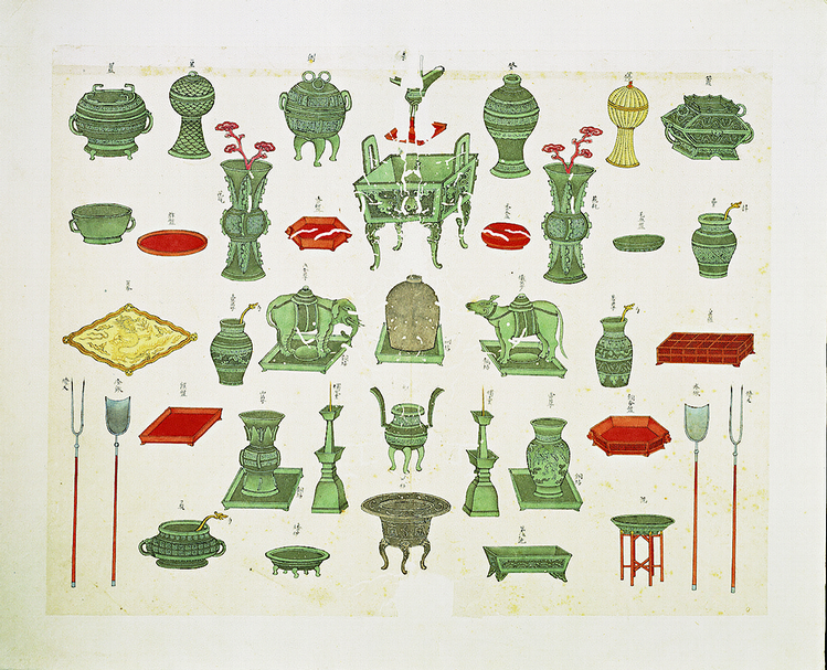 清蔣元樞〈重修台郡建築圖說〉,其中呈顯祭孔的禮器,國立故宮博物院藏。(圖/國立故宮博物院)