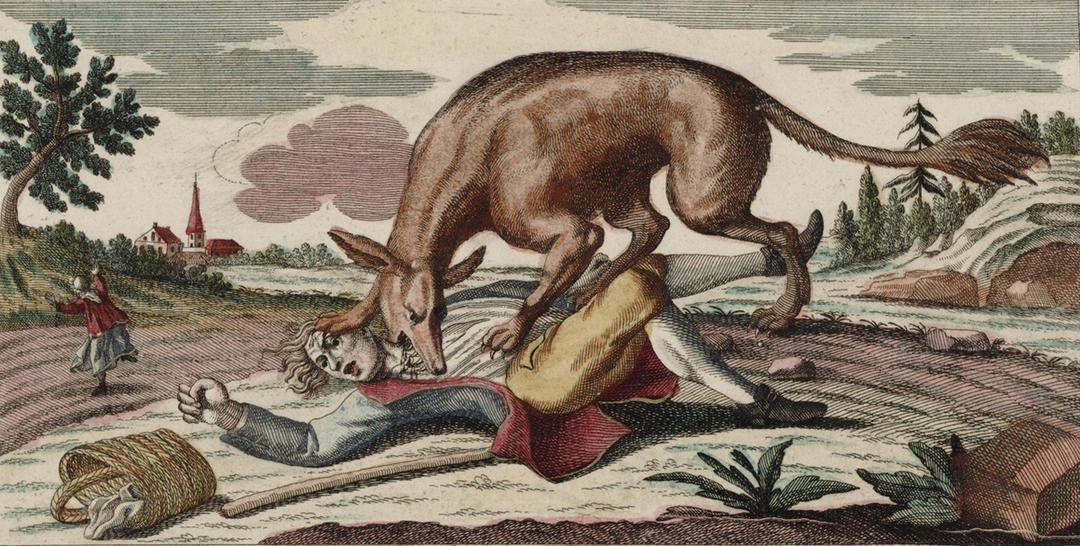 1764年作蝕刻版畫,熱沃當怪獸,法國國家圖書館收藏。(©Gallica Digital Library)