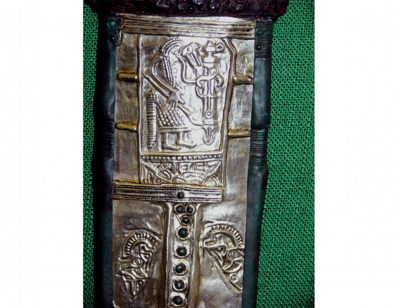 奧地利古滕斯泰因(Gutenstein)出土的七世紀劍鞘,上有狼戰士圖樣裝飾,德國美因茲羅馬日耳曼人博物館藏複製品,原件現藏於莫斯科的普希金博物館。(©Wikimedia Commons)