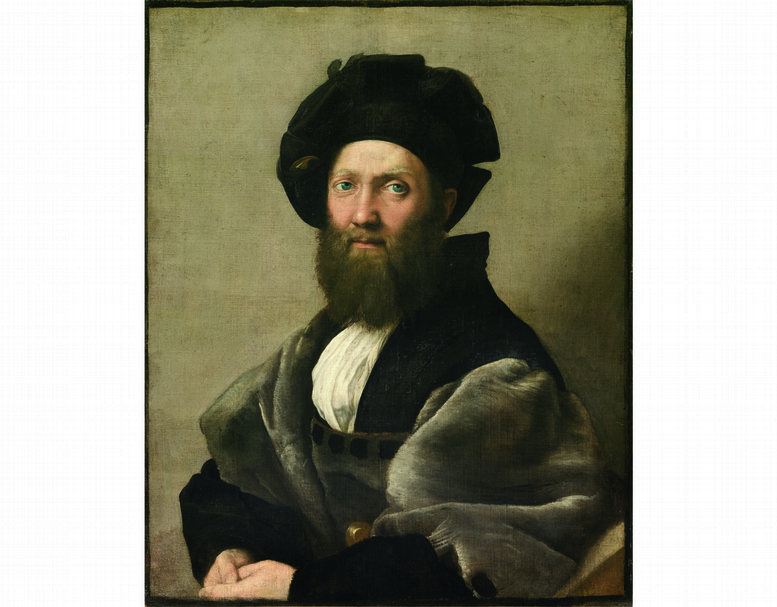 拉斐爾的友人卡斯蒂利奧內(Baldassare Castiglioe),也是該次展出的作品。拉斐爾,《卡斯蒂利奧內肖像》。(圖片來源:維基百科)