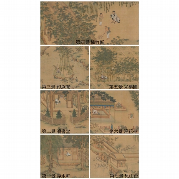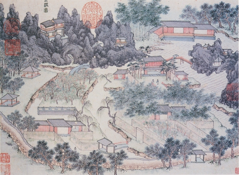 仇英透過繪製宋代名園,將歷史園林再現於世,而稍晚的董其昌(1555-1636)也曾希望以唐代王維《草堂圖》和《輞川圖》古畫中的園林,營建真實居所。《兔柴記》:「幸有《草堂》、《輞川》諸粉本……蓋公之園可畫,而余家之畫可園。」園林的圖景化是16世紀中國園林發展的主流趨勢。(註5) 無論是以圖寫園,又或者是以圖蓋園,兩者雙向的文化互動,都說明了園林不再僅是一處現實世界中可遊玩的居所,更是一件立體的園林繪畫。當主人居遊其中,彷彿超越了真實世界,進入一個有別於日常的畫境之中。