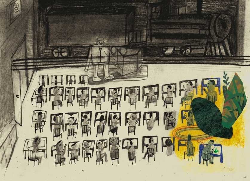 雖然人權議題的成人讀本、檔案她都還是能在坊間找到,多數都是被整理、修飾過後的文本呈現。但因為工作坊得以親身貼近受難者的口述,除了故事,她更關注受難者無心提起過往的生活細節或往事,或是一回溯就無法止息的記憶洪流。這些日常與不經意的敘述,是她無法在書面資料上閱讀到的,遺址的空間感、真實的口述,反而讓她捕捉到許多真正觸動她的靈感,「我最後完成繪本的靈感就是在參訪過程當下,決定要繪製的主題。」