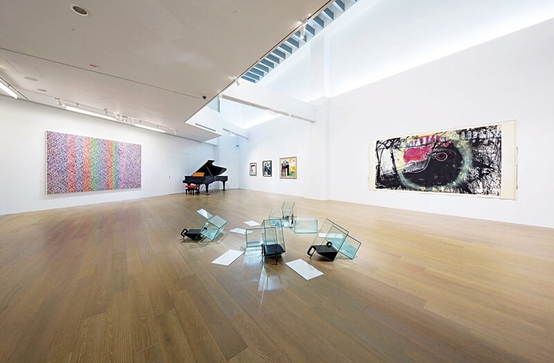莊普《光與水的移位》與趙春翔作品。(尊彩藝術中心提供)