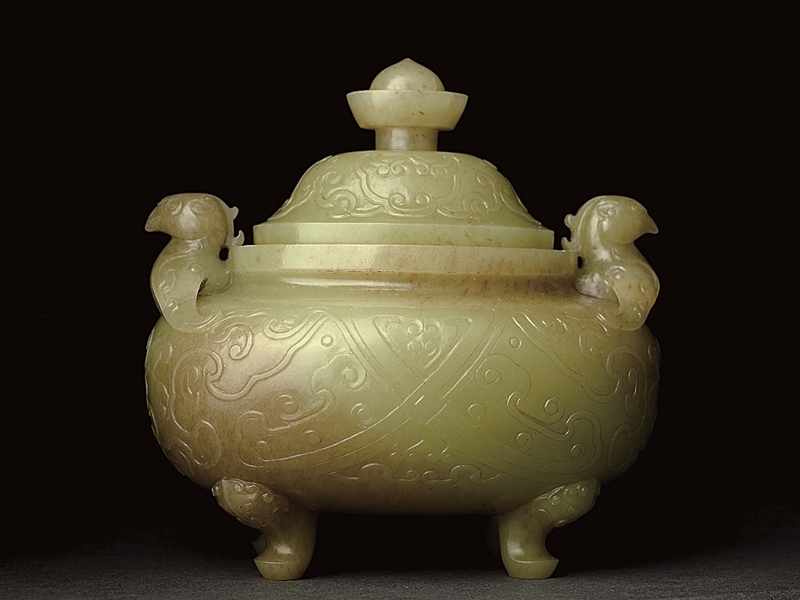 永寶齋:清乾隆〈青花三羊開泰雙耳抱月瓶〉。