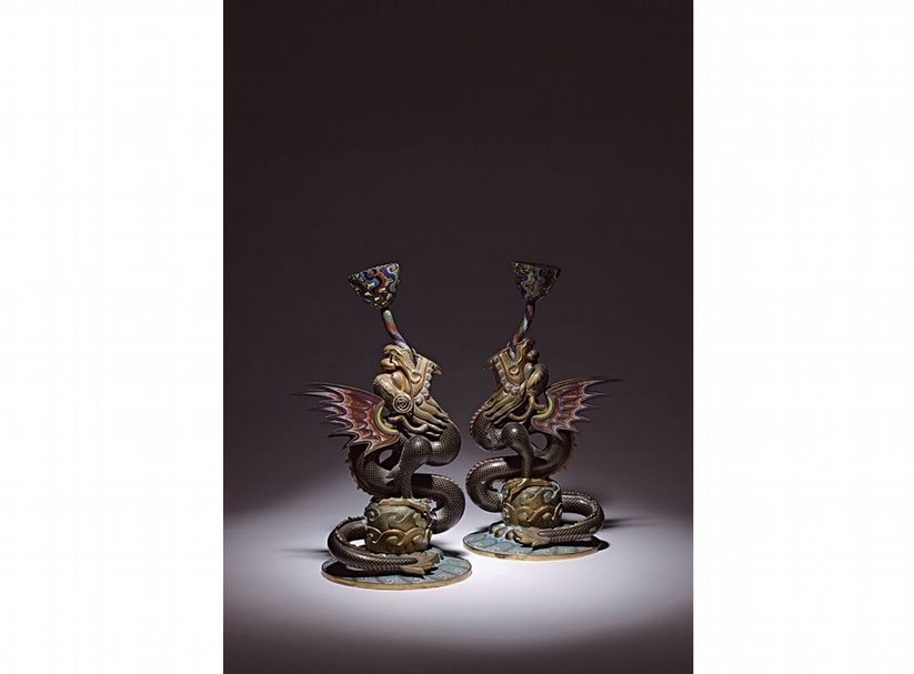 清中期〈掐絲琺瑯飛龍擺件〉一對