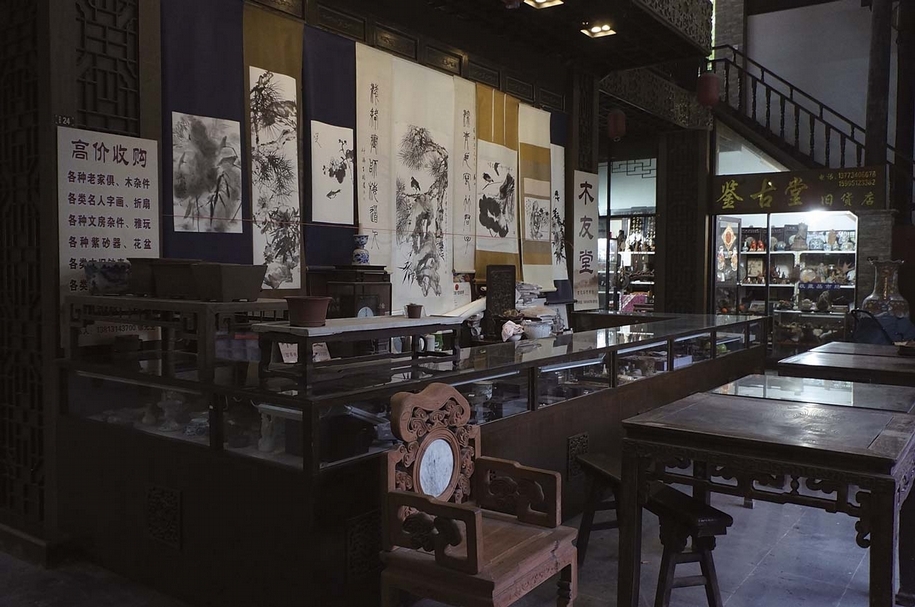 現在的揚州書畫古玩市集規模小,沒有嚴格意義的畫廊和一級市場。圖為揚州准提寺民間收藏品市場。(胡懿勳提供)