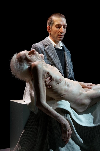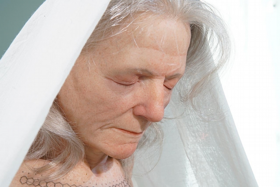 山姆.詹克斯(Sam Jinks)的《靜止的生命(坐姿哀憐像)》作品局部。(毓繡美術館提供)