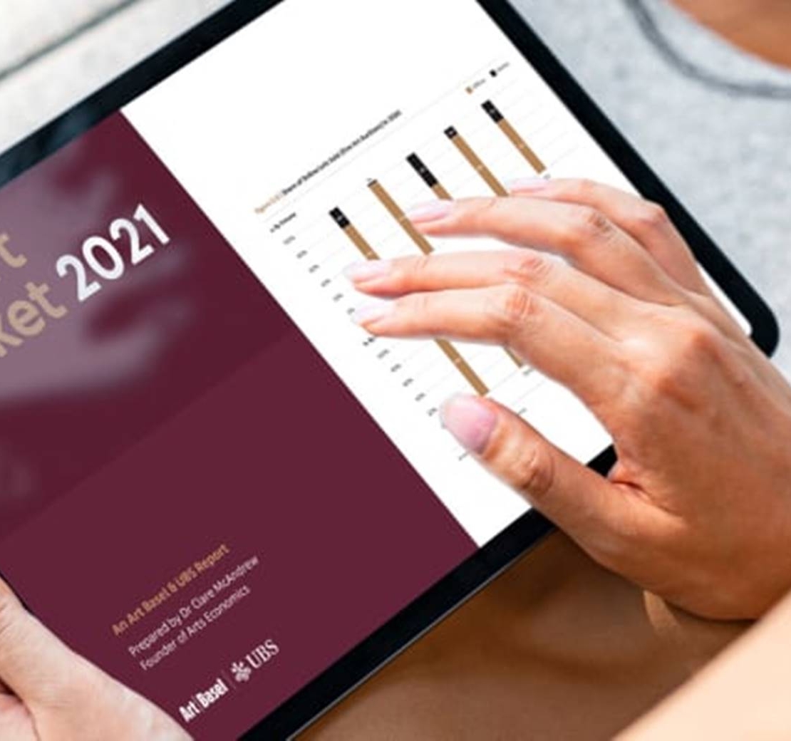2021年瑞銀集團(UBS)與巴塞爾藝術展(Art Basel)《巴塞爾藝術展與瑞銀集團環球藝術市場報告》已出版,報告顯示2020年全球藝術品及古董銷售額為501億美元,成為2009年經濟大蕭條後的最低點。全球公開拍賣(不包括私人洽購)總額達176億美元,比2019年下跌30%,但私人洽購上漲36%。各地區在整體藝術品銷售額上均有下降,三大藝術中心領先市場,於去年在全球創佔據82%的主導地位:美國仍為第一大藝術市場,整理銷售額佔全球的42%,兩岸四地(大中華地區)及英國市場的份額分別為20%。