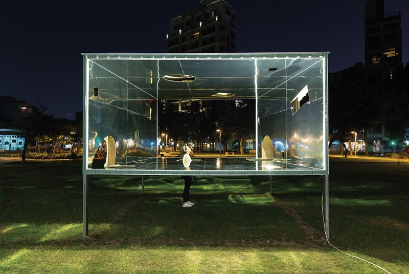 在中山站至雙連站之間的巷弄,過去曾以精湛的鐵工技藝創造台灣經濟奇蹟,但隨社會工作型態與產業變遷,目前赤峰街與興城街只剩下零星仍在開張的五金零件、鐵舖見證著這個城市曾經的驕傲。旅美建築師賴彥吉探查建成公園鄰近街區,發現街區中有摩登的新式大樓,也保留著許多老式街屋,因此以建築與藝術史的視野介入思考,如何能將產業歷史與台灣建築特色形式結合?他以作品《城市切片》,沿用貌似台灣林立工廠的鐵皮屋外型,以圓或方的切片開口,框出工廠周邊的城市切面,裝置內部透過鏡面相互反射,塑造觀看城市不同的可能。