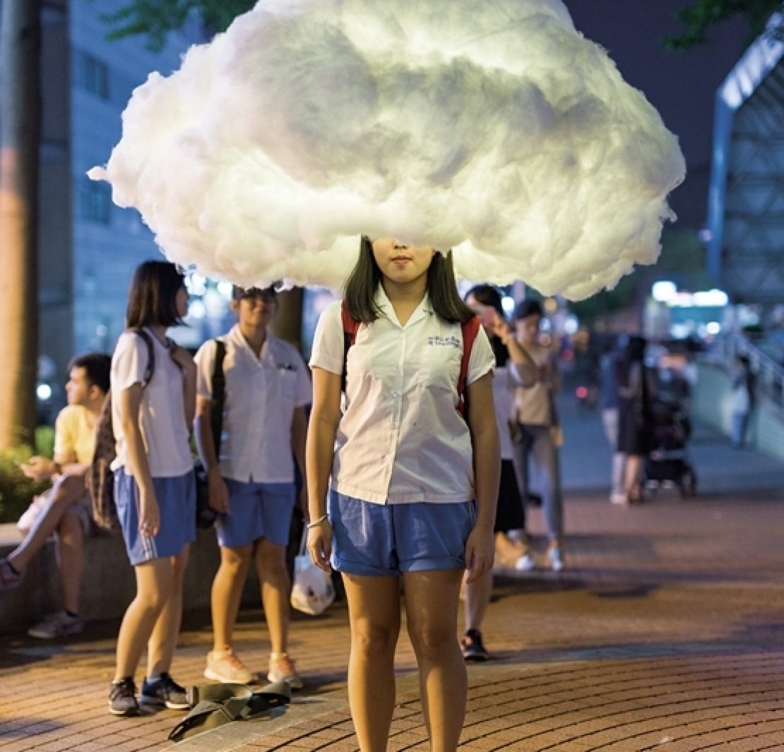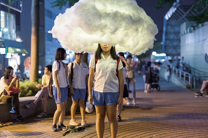如捷運中山站隨著開通以來,逐漸成為中型腹地的百貨公司、微型文創品牌、咖啡館與美髮美容店的一級戰區,年輕、新銳的設計師與創業者,以尺幅不大的店舖在此聚落與孵夢,也是老、少文青消費與聚會的首選。法國藝術團隊阿馮索與佛荷(Mickaël Martins Afonso & Caroline Escaffre-Faure)將「夢」具象化,以作品作品《白日夢》(Head in the Clouds)懸掛蓬鬆潔白的雲朵,在白天宛若一個冉冉升起的未竟夢想,夜晚溫暖的黃光打亮雲朵,也療癒每個經過此地疲憊身心的通勤族;民眾可以與每朵雲朵自由互動,把臉埋首在雲朵裡,短暫脫離城市的喧鬧。雖日前新聞媒體報導此件作品遭受幼童刻意破壞,引起民眾與公共藝術定義與距離的爭議討論,但策展團隊表示這也讓社會重新思考藝術定義,意外促成社會教育的功能;而民眾對於雲朵的材質好奇或不小心的損壞,其實都在藝術家們可理解與諒解的預期發生範疇裡。公共藝術的公開性與互動性是難以避免的,然而臨時性藝術品如何在展期內全身而退,也成為偵測民眾對於美感物件尊重的試紙。