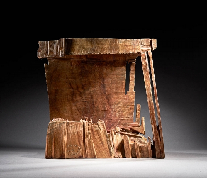 張敬,《大氣河山》,21x163x35cm,台灣千年古肖南。(張敬提供)