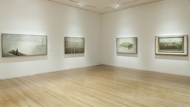他在畫面中刻意建構了一種曖昧(Ambiguity)的光影,與作品題材相呼應,充滿超現實的畫面,讓人彷彿義大利超寫實主義大師德.基里訶(Giorgio de Chirico)一般真空的空間與虛擬場景。這些為了構圖完整而存在的光影恰如其分配置在虛擬的故事情節裡,從古代穿越到當代的時間,從英國皇室到中國當代社會甚或歷史題材的時空表現,他將個人對於個人的題材轉移到社會的題材,將個人情緒化的表現轉移到群眾裡,若有似無的故事以虛擬,抽象,跳躍的方式開展,正如這些光影塊面的虛擬故事一般。