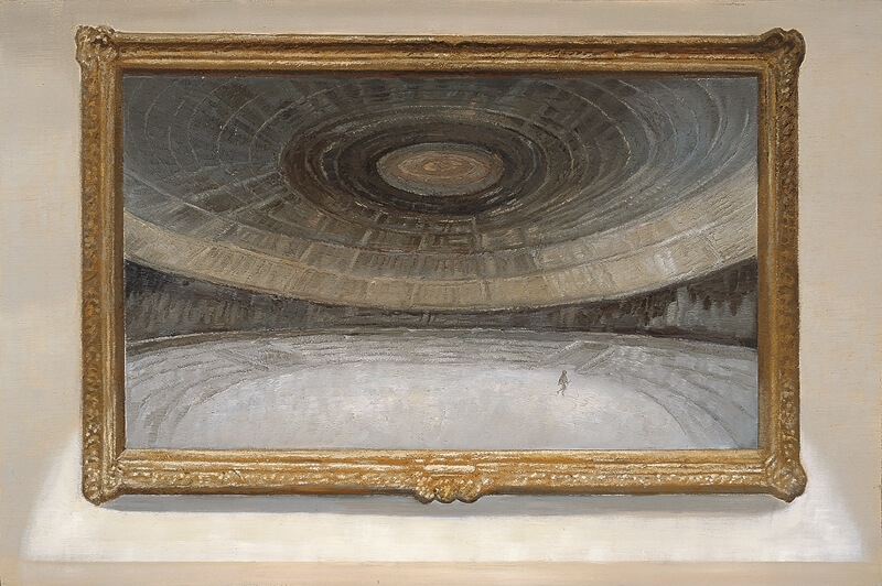 無論是風景或者人物的題材,在何杰的作品裡的「畫框」成為獨特的繪畫符號重複出現,引導觀者進入「畫中畫」的世界—畫框之外的另一次元的空間。自從有繪畫開始,畫框的最早作用是分割畫面,在形式上畫框區分了框內與框外的兩個世界以及語境。何杰在採訪中說到他並不是刻意要表現「畫中畫」的概念,而這種表現手法的契機是一次在國外參觀美術館時終於親眼看到敬仰已久的佛洛伊德(Lucian Freud)原作時的特別感受。